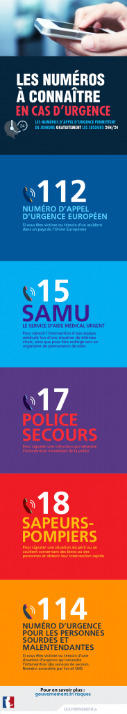 Numéro d’urgence pour les personnes sourdes ou malentendantes (accessible par SMS/Fax) : 114